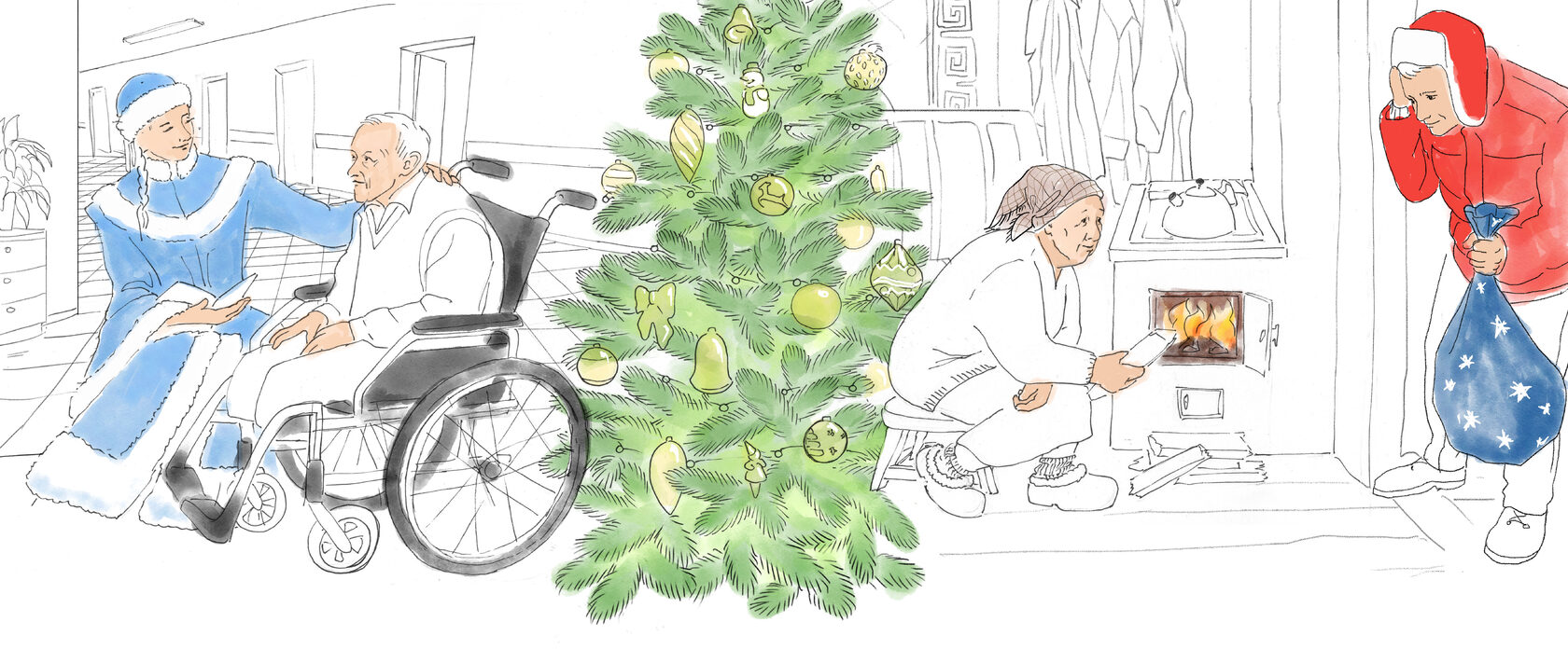 Очень грустно, когда в новый год ты совсем один. Еще грустнее, когда вокруг все кричит о семейном празднике, а ты не можешь ни с кем разделить свою радость, а вернее, свою тоску. Наши подопечные бабушки и дедушки, люди с инвалидностью встречают 2024-й кто дома — и в одиночестве, кто в интернате, но и там им не хватает ощущения праздника и новогоднего чуда.
